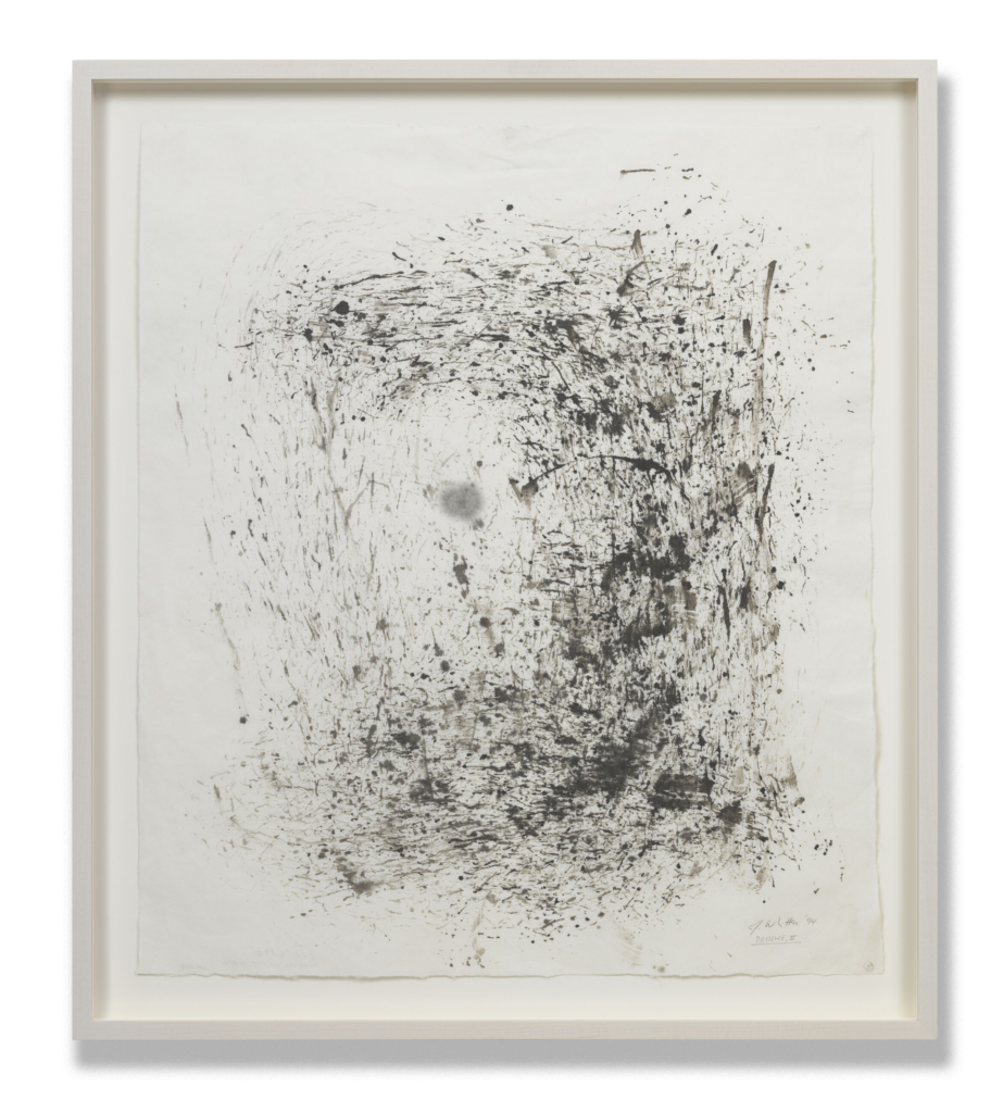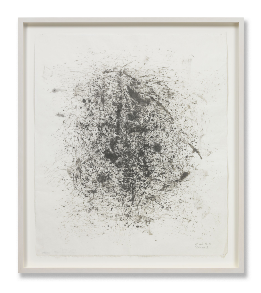 The artist’s selective return to control and choice is further demonstrated by his use of Sumi ink. One can see the beauty of Sumi ink’s capacities in Whitten’s ‘Presence’ series, made in 1994. This body of work, characterized by their evidently serendipitous marks, is representative of Whitten’s fascination and commitment to materiality; however, the challenge and subsequent blessing of this medium is that there is no such thing as erasure.