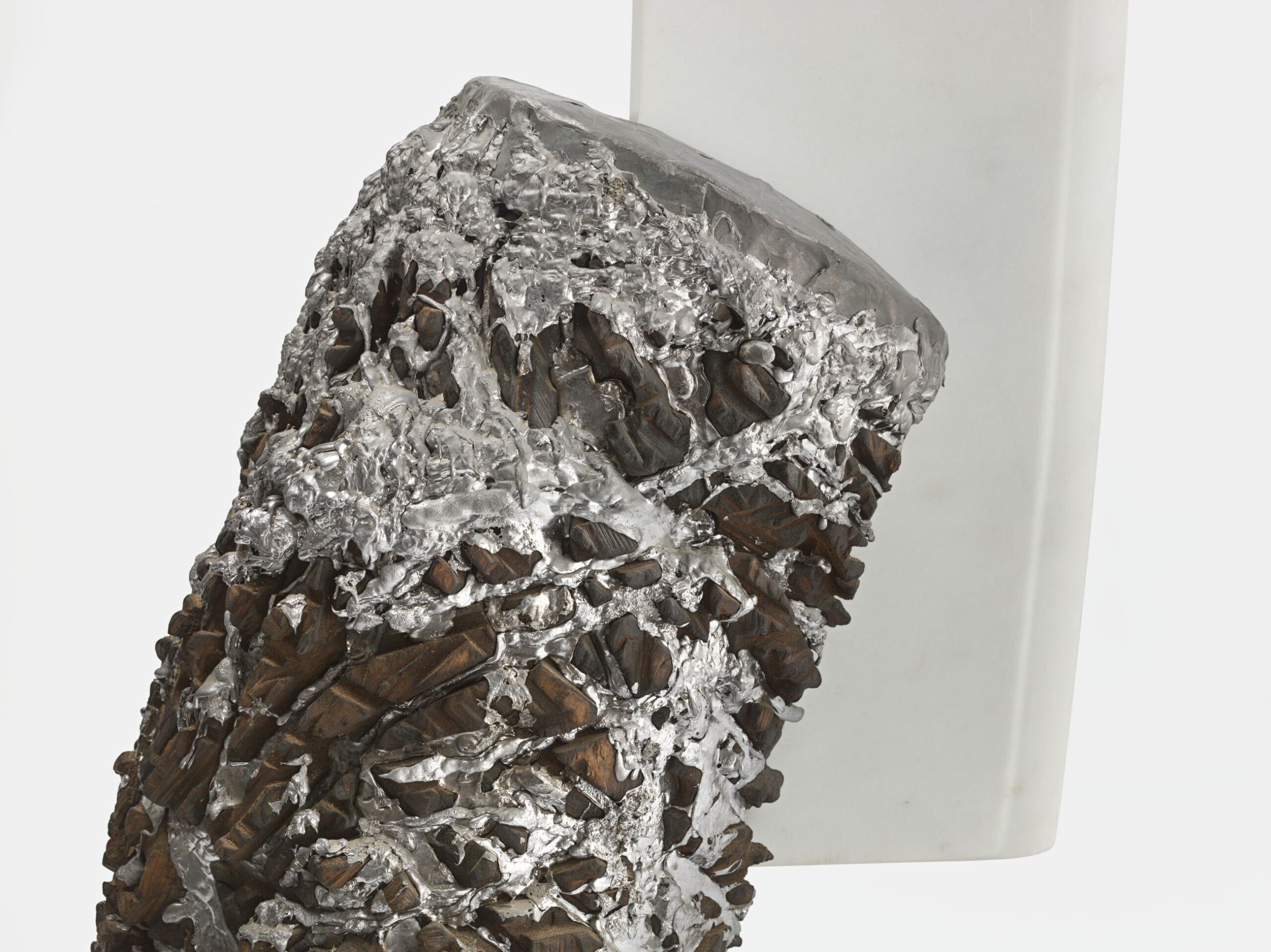 Marble, metal, lead, charred black mulberry wood